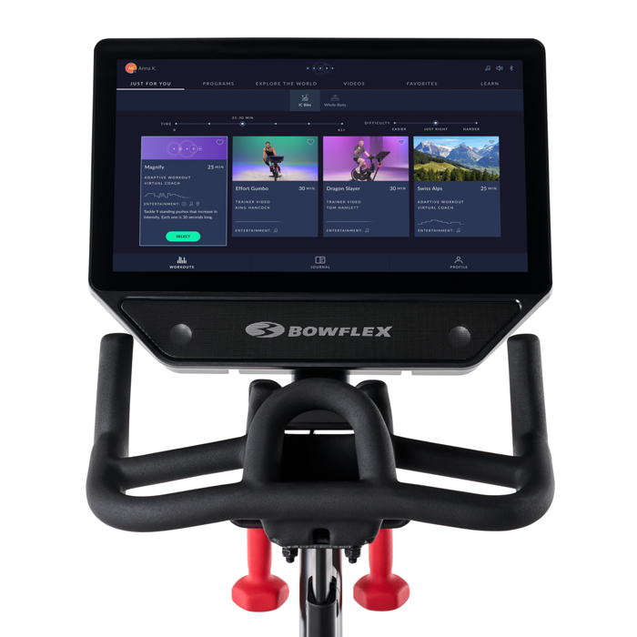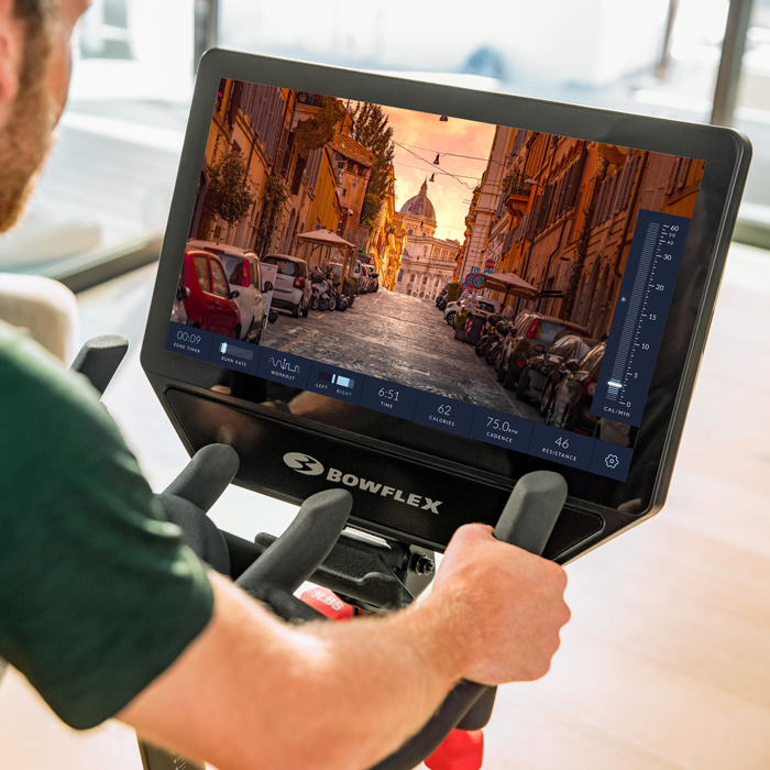 At the center of the VeloCore is a stunning 22-inch HD touchscreen that delivers vivid visuals and responsive control. Stream a wide range of workouts and entertainment using JRNY®, BowFlex’s adaptive fitness platform. With a JRNY membership, you get access to personalized coaching, scenic rides, progress tracking, and streaming apps like Netflix, Disney+, Hulu, and more — directly from your console.