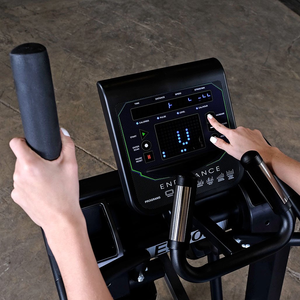 The Endurance E5000 Premium Center Drive Elliptical is the perfect blend of research, engineering, performance and technology. Patented technologies have been applied to the E5000 providing a stable, space efficient platform to perform rigorous low impact full body workouts. The combination of a natural stride, quality manufacturing and superior programming have created the latest evolution in cardio training. The E5000 will help save money as it uses an internal generator, eliminating any power requirement.