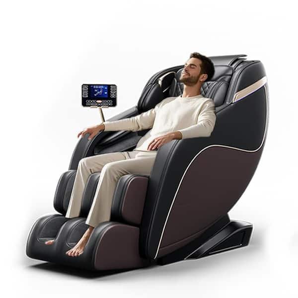 Eunice Black+Brown Faux Leather 3D Zero Gravity Massage Chair with SL-Track, Shiatsu, Heated, LCD Control, Foot Rollers
