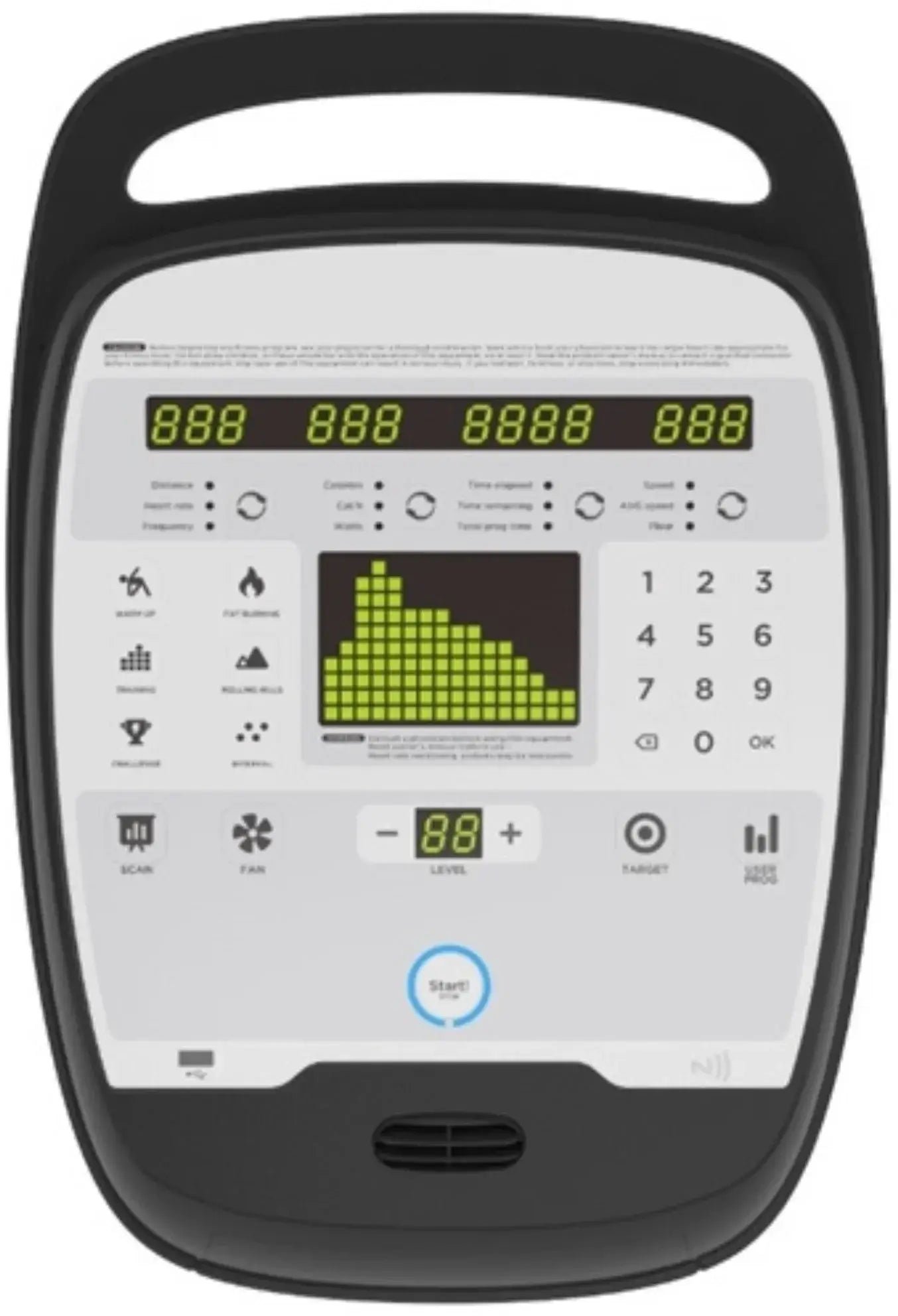 Features real-time tracking for metrics such as distance, calories, heart rate, and time. Easy-to-read display with quick program access. User Comfort