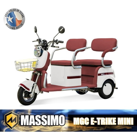 The Massimo MGC E-Trike Mini Adult Electric Cart with 2 Seats — 3-Wheel Electric Scooter for Adults -White is a fitness equipment by Massimo. It offers stable performance, smooth operation, and easy-to-use controls, ideal for home and commercial workouts.