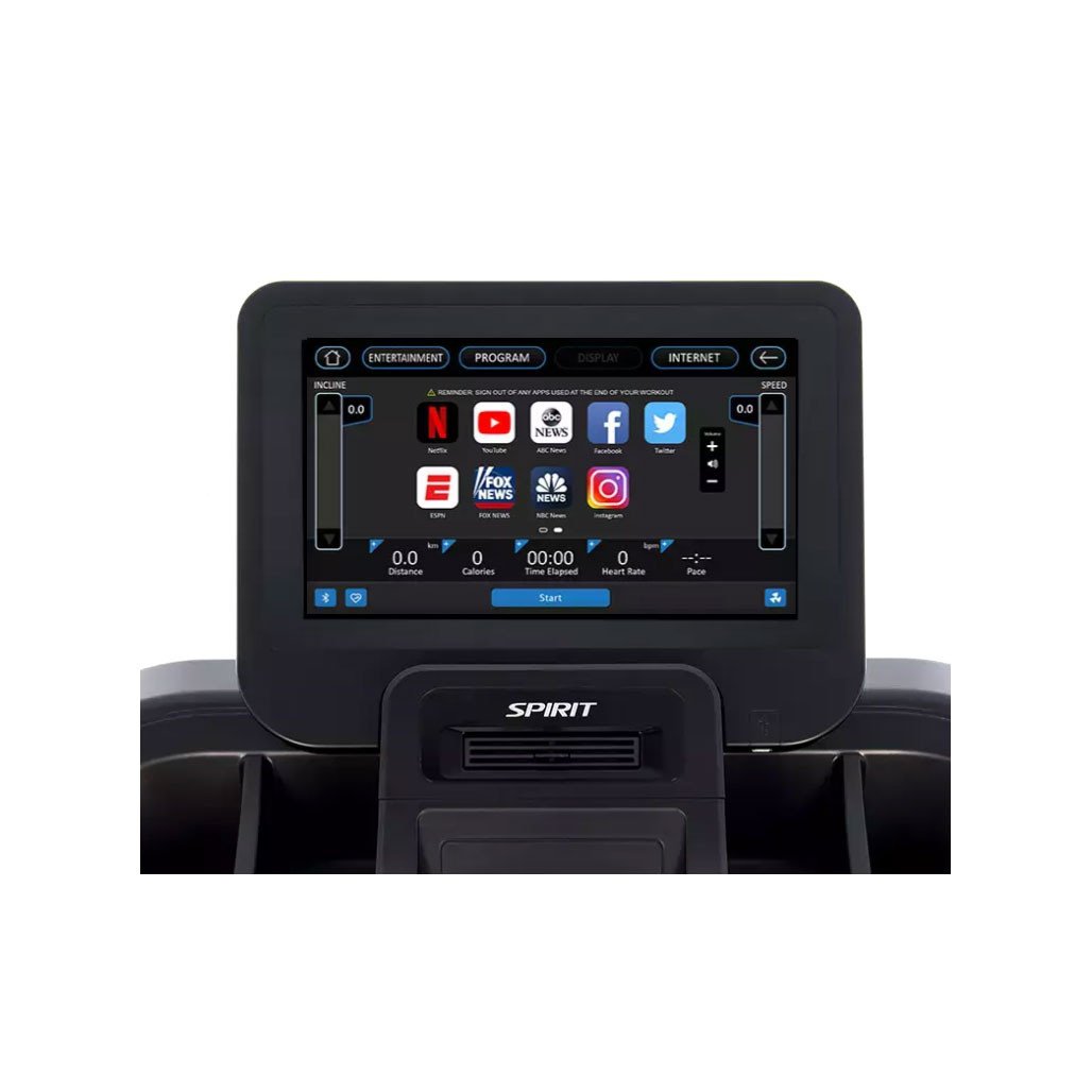 The CT850ENT Treadmill combines the solid CT850 platform with touchscreen technology on an oversized 15.6” entertainment display. Preloaded apps give users the ability to stay entertained during their workouts with popular streaming, news, and social media content, while an easy-to-use interface is adaptable to nearly any facility. Preset programs include a wide variety of popular workouts for the average user while fitness tests, heart rate programs and a custom program are available for users looking to track additional stats. Comfort was considered with the addition of a cooling fan, five convenient accessory trays, and ergonomically positioned hand pulse sensors.