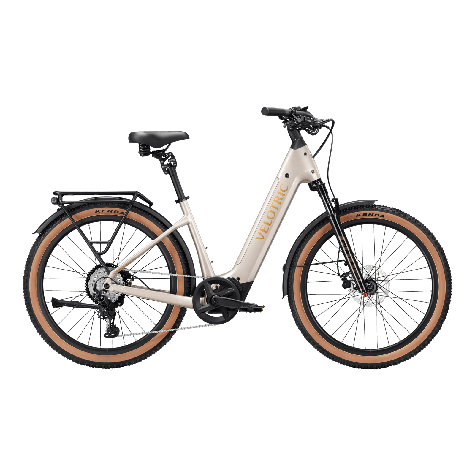 Velotric Discover M Ebike, Suspension Seatpost, NFC Key Card, Rear Rack, and Fenders.